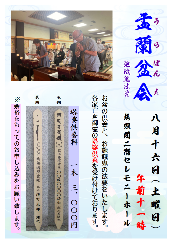 正式には「盂蘭盆会」といいます。
