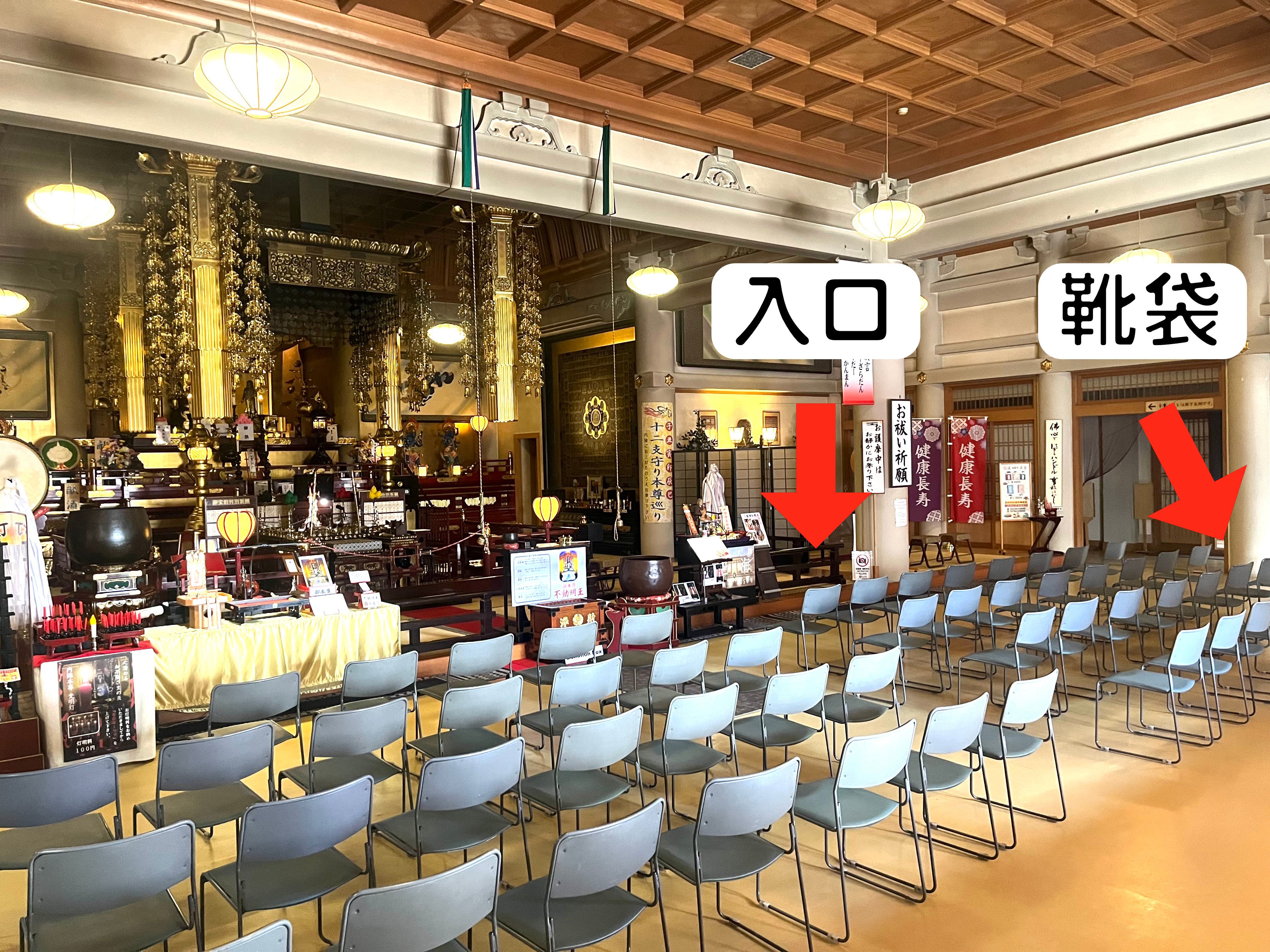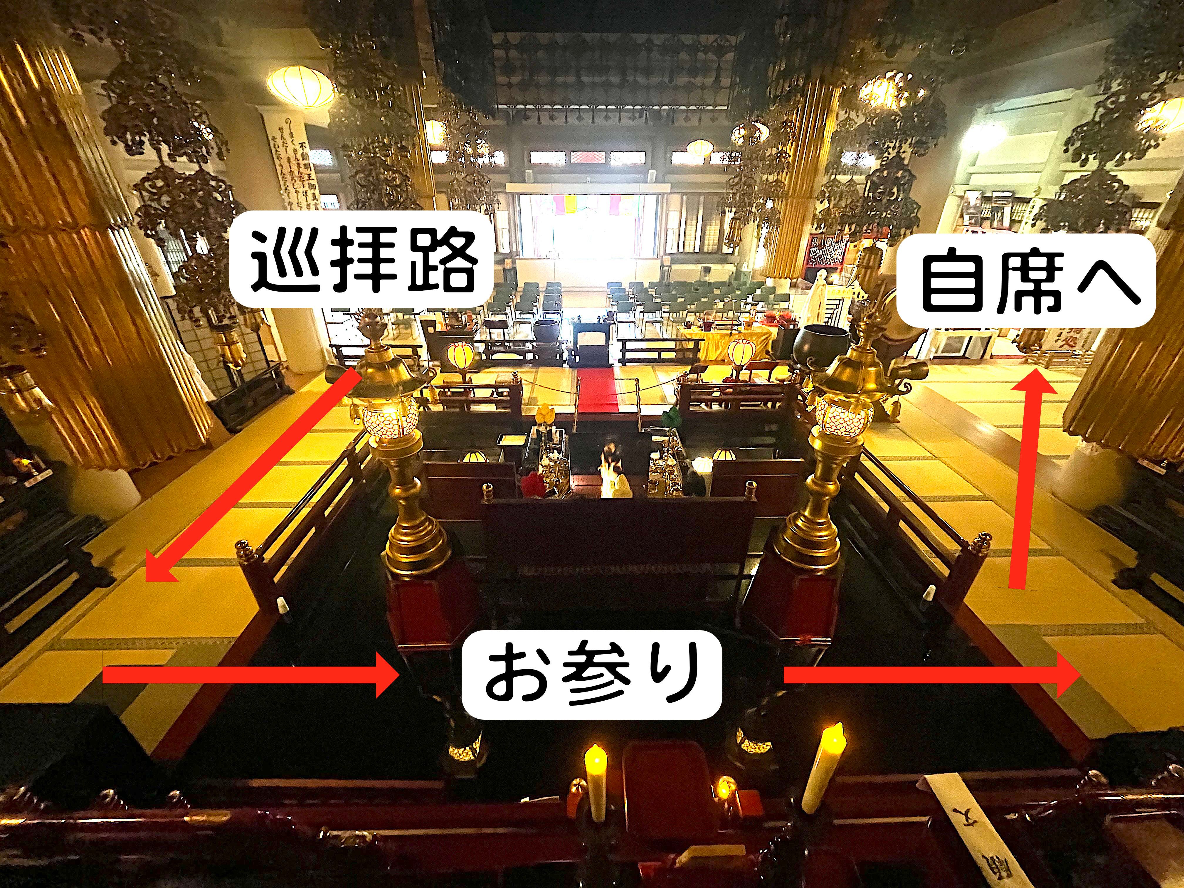 また、内陣参拝へのアナウンスがあり皆様が順番に並ばれる際には、本堂正面を向いて右側の席の方から順番に並んでくださいますよう、お願いいたします。