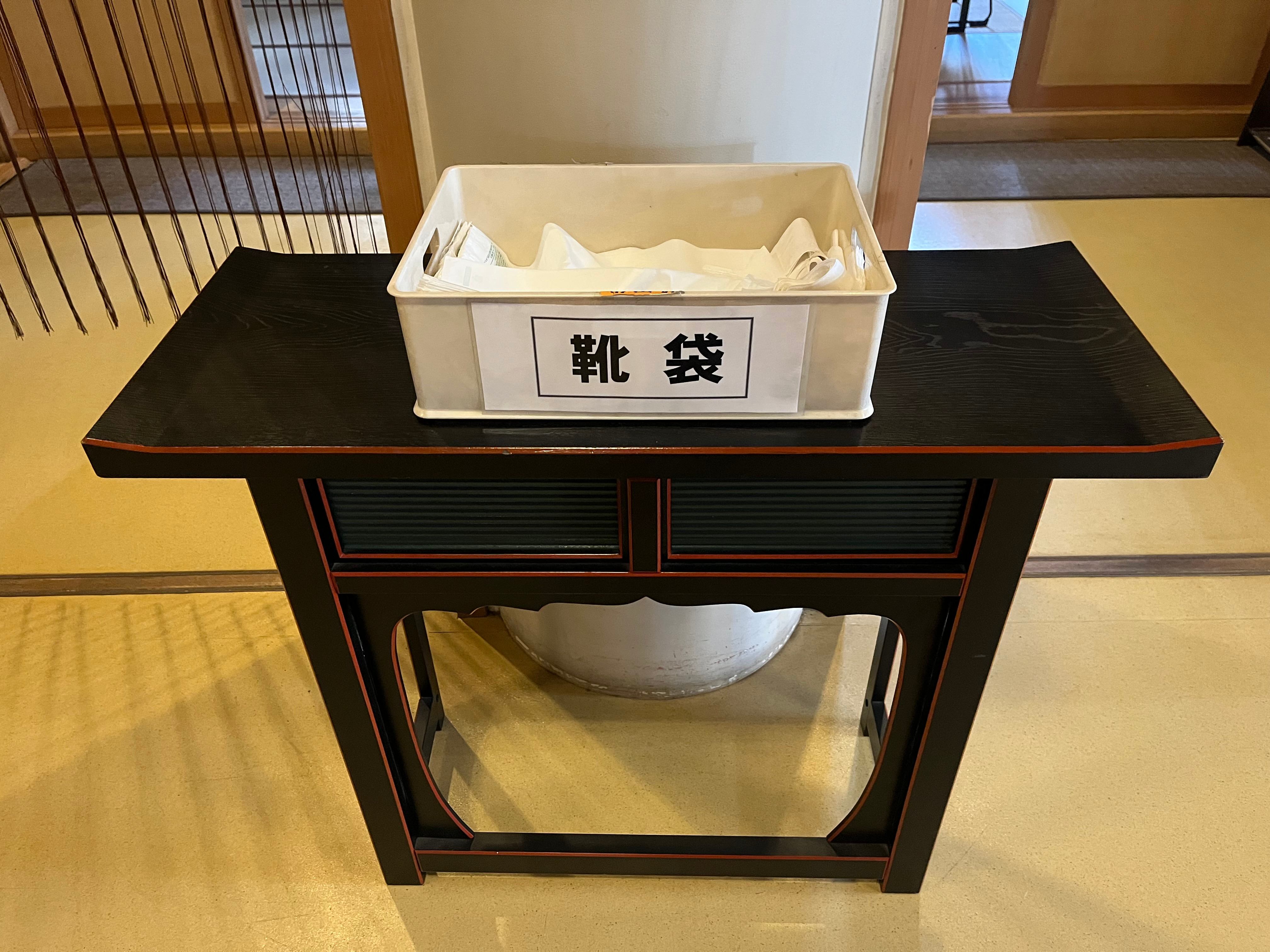 こちらを開放しますので、履き物を袋に入れてお上がりください。