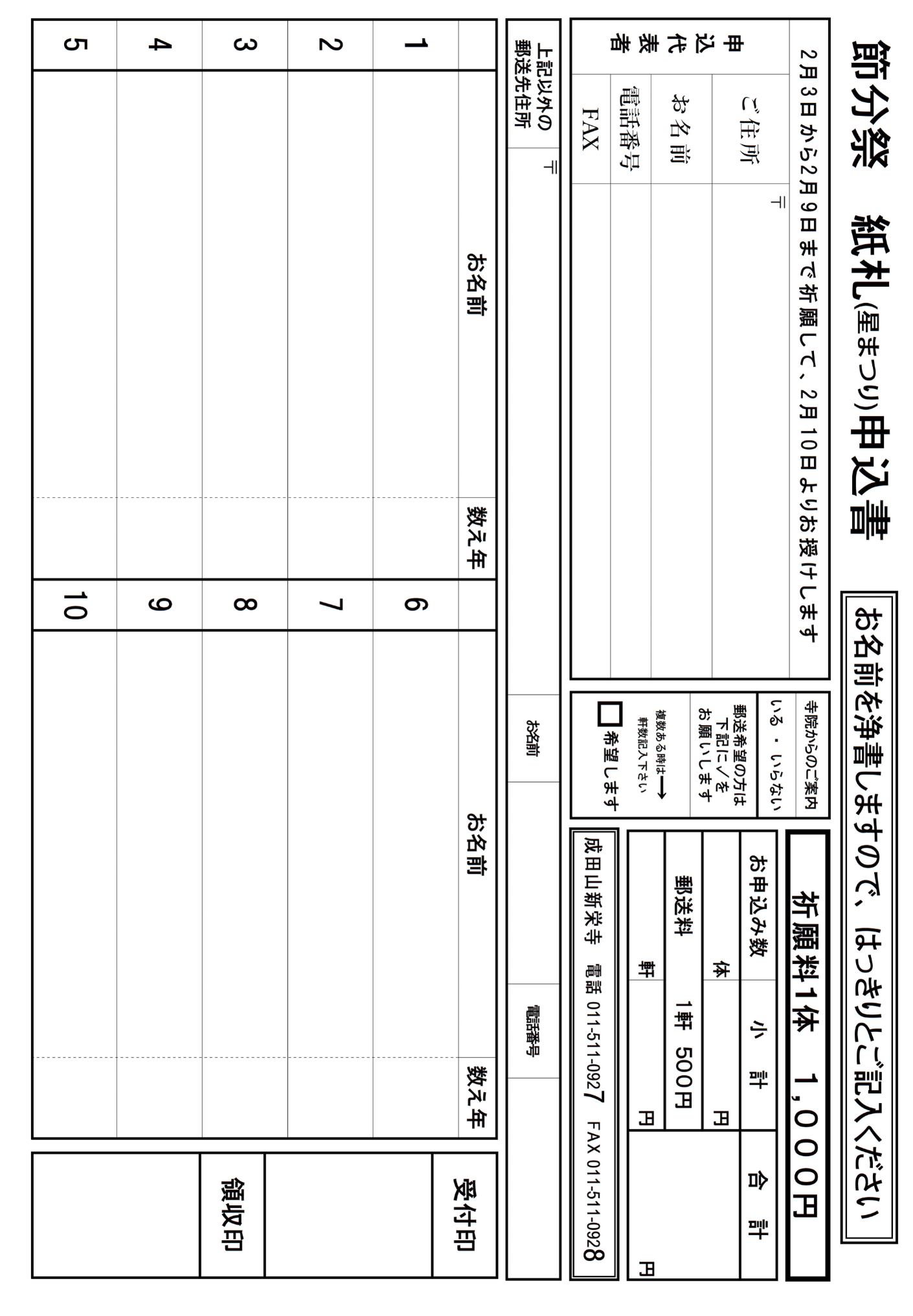 お電話または本堂受付にてお申し込みください。
