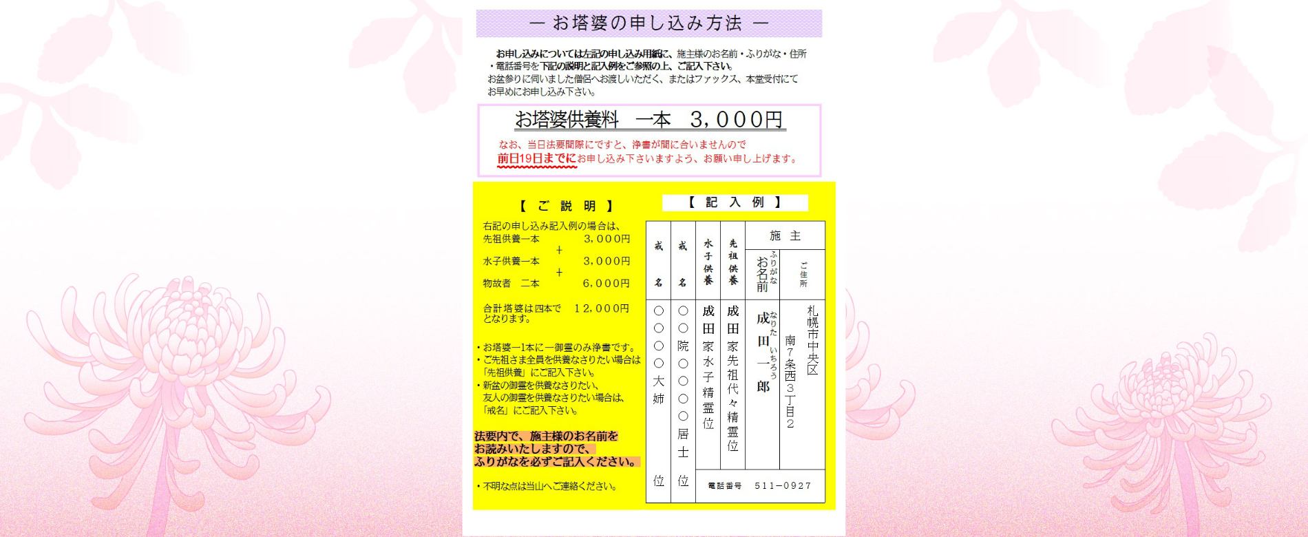 ○イベントに「春彼岸塔婆申込」を追加しました。