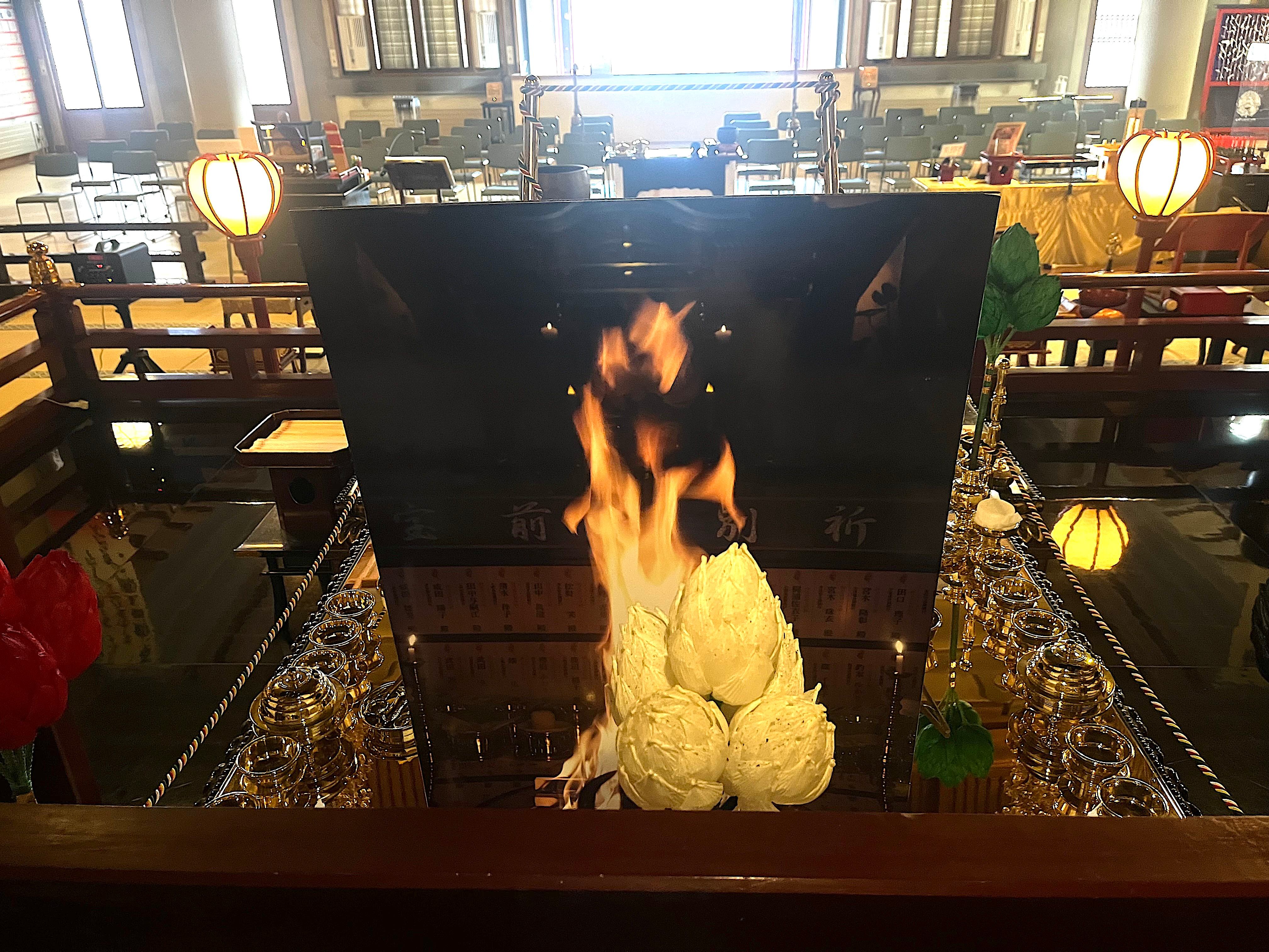 お持ちのスマートフォン・お財布・小物など、お護摩の炎にかざしお加持ください。