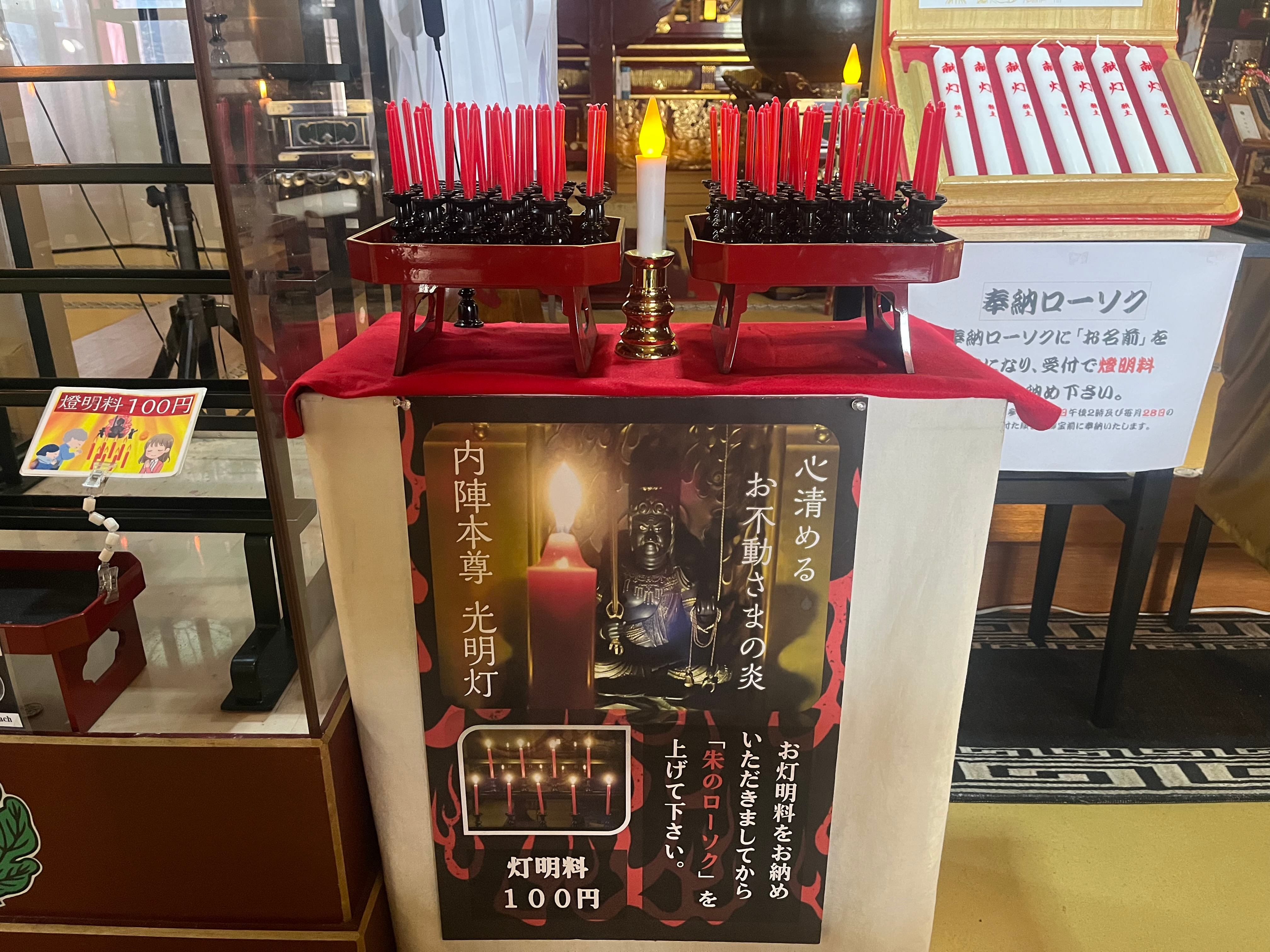 また、「内陣本尊 光明灯」という朱のローソクの献灯もできますので併せてご案内申し上げます。